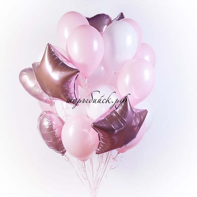 хит Букет белых и розовых шаров с сердечками и звездами 4050 руб. В корзину В состав композиции входит: 15 латексных бело-розовых шариков – 30 см 3 фольгированных розовых сердечка – 45 см 3 фольгированных розовых звезды – 45 см В состав композиции входит: 15 латексных бело-розовых шариков – 30 см 3 фольгированных розовых сердечка – 45 см 3 фольгированных розовых звезды – 45 см