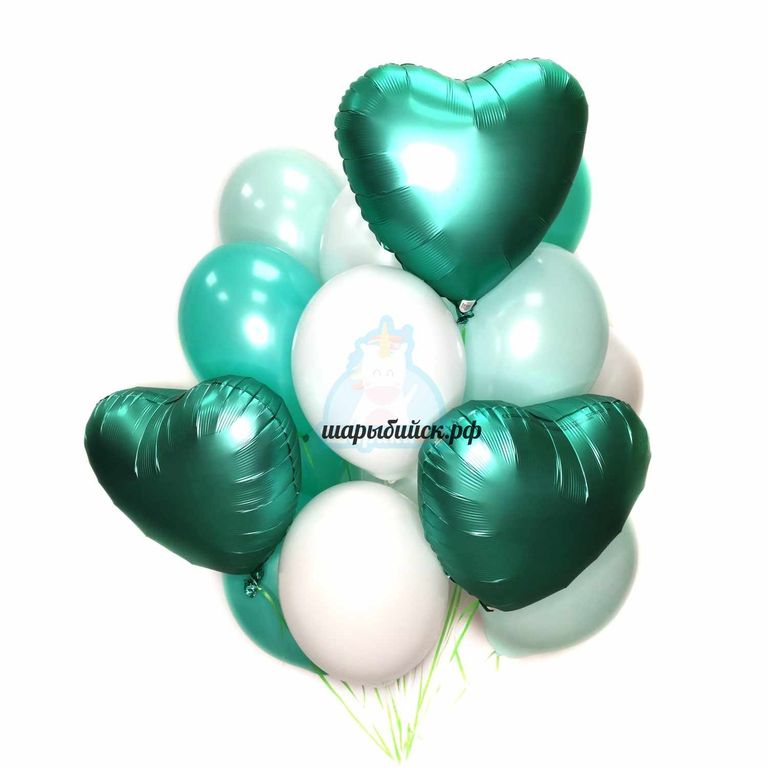 Композиция из воздушных белых и мятных шаров с сердцами 2700 руб. В корзину Состав:Фольгированные сердца 45 см – 3 штЛатексные белые мятные и нежно мятные шарики 30 см – 12 шт Состав:Фольгированные сердца 45 см – 3 штЛатексные белые мятные и нежно мятные шарики 30 см – 12 шт